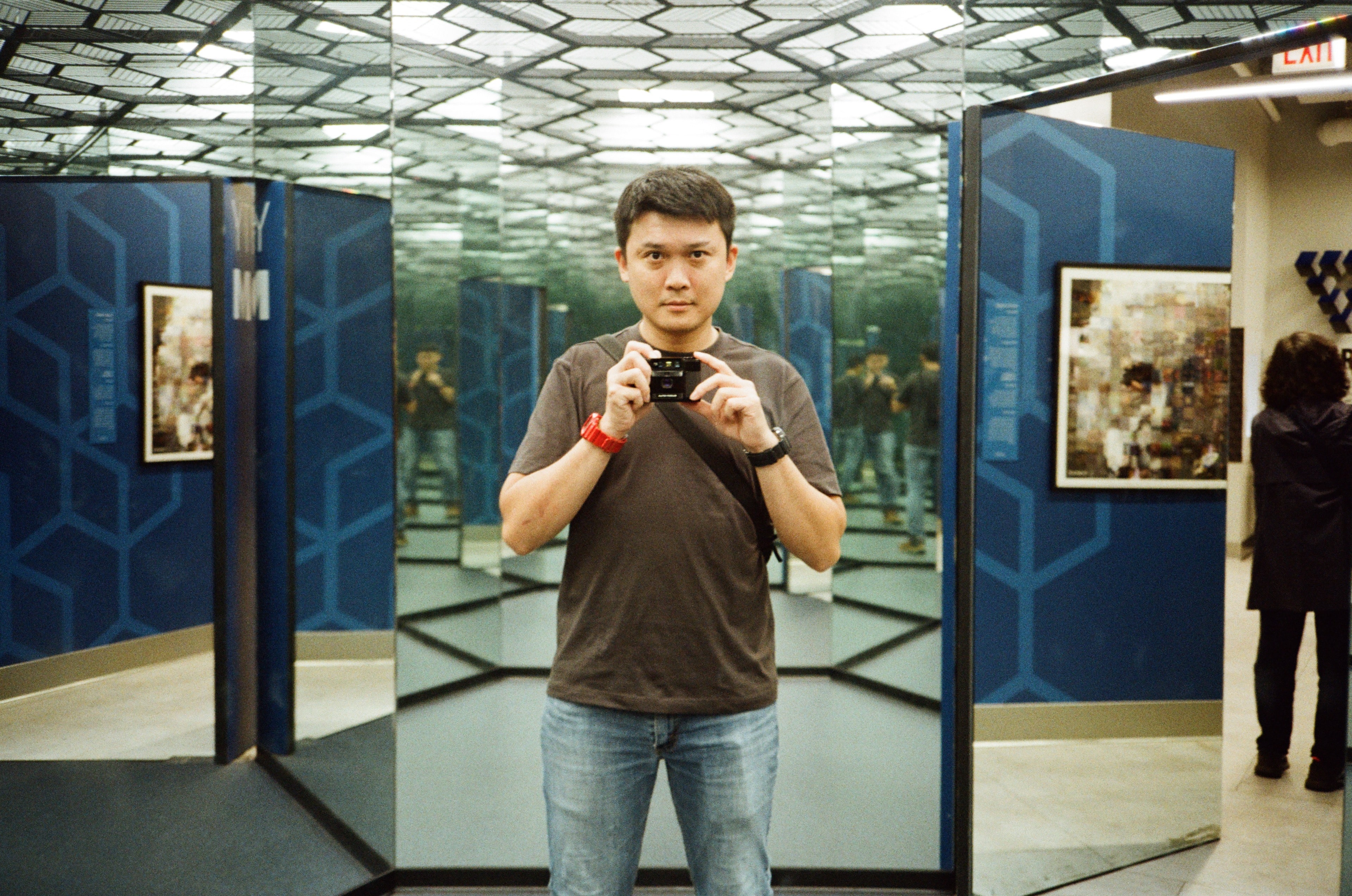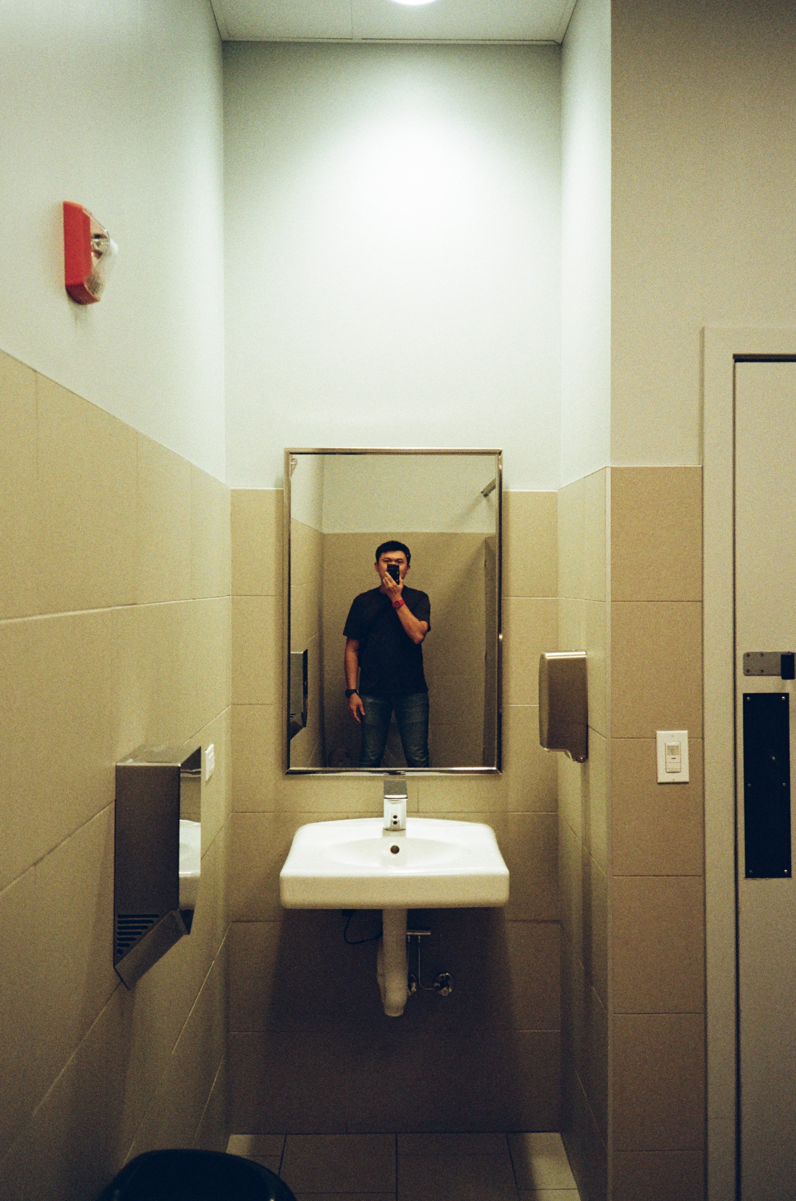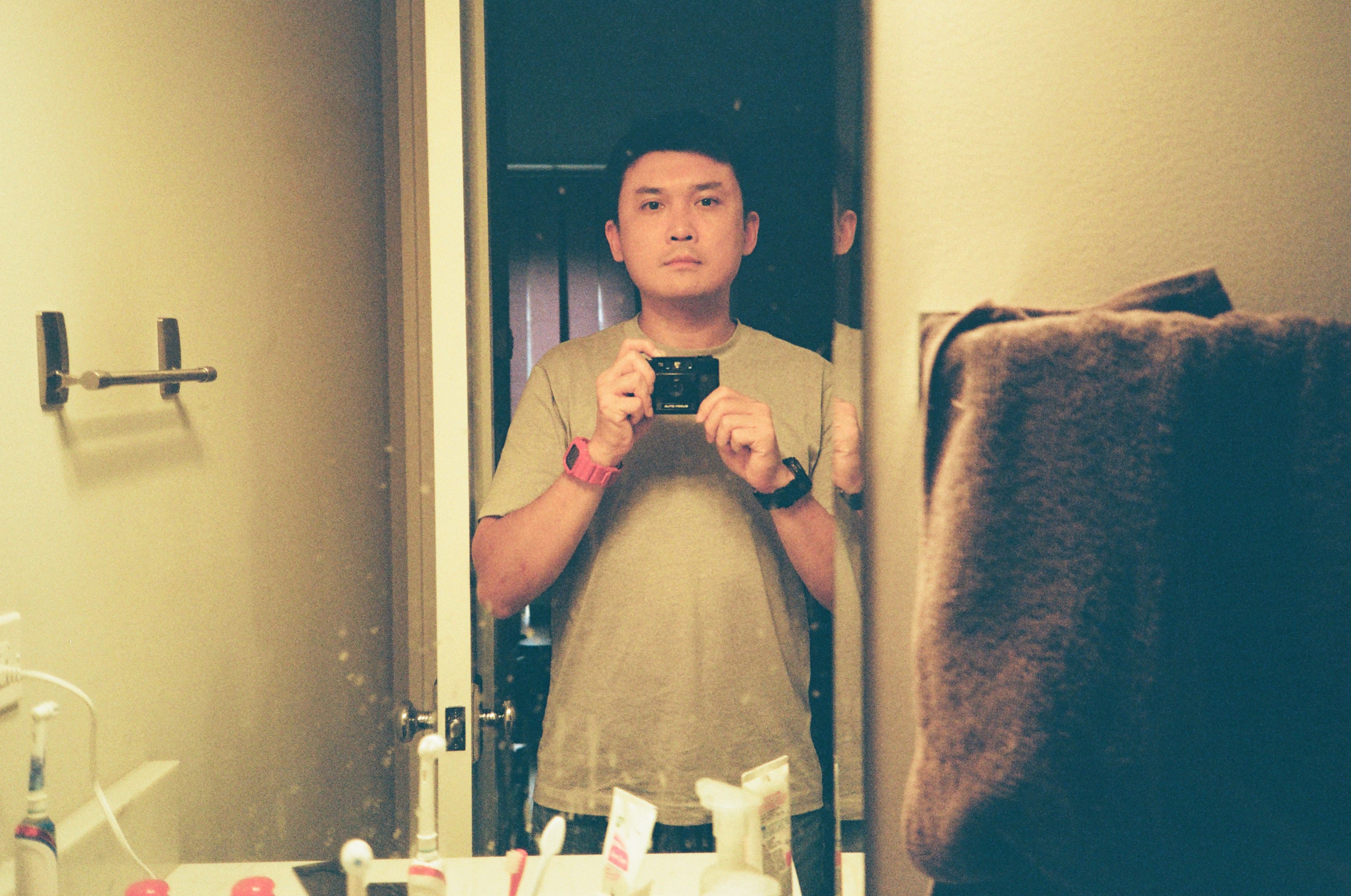 這是一張難得非常準焦的傻瓜相機自拍照,而且看起來還是用 f2.8 光圈去拍攝的,記錄了我每天都會進進出出個幾次的廁所。