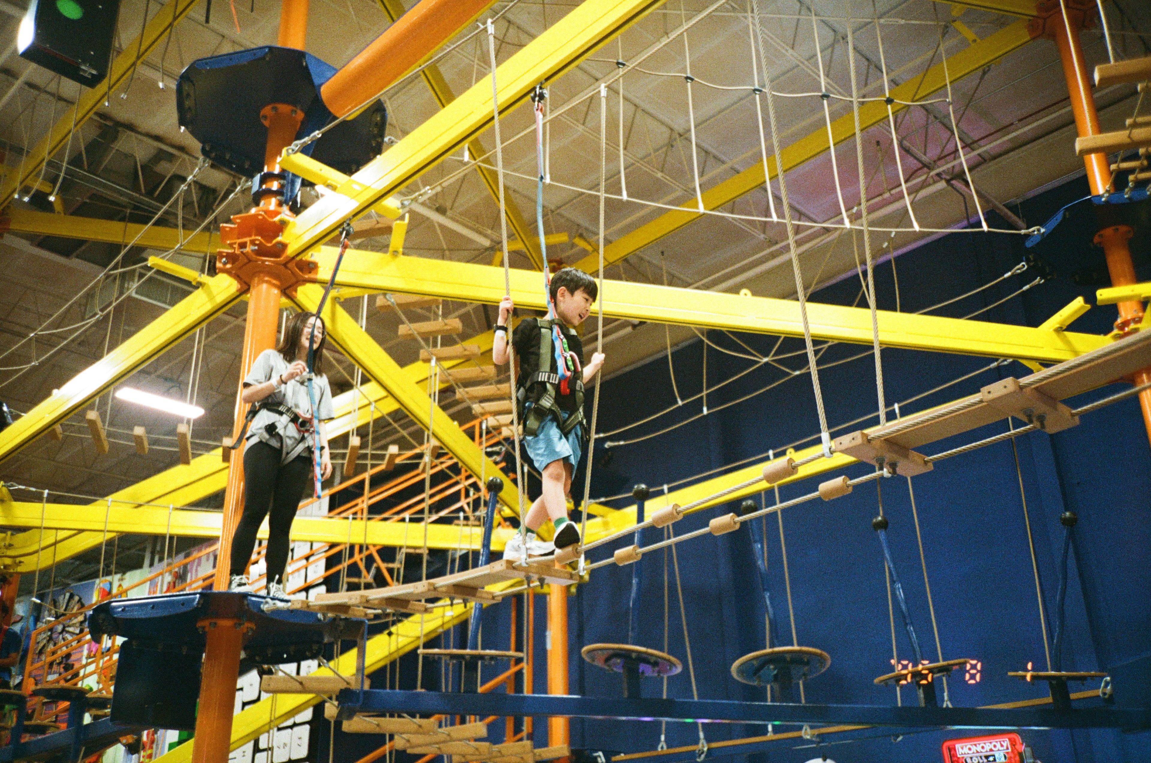 ClimbZone 也有室內高空繩索設施,我不知道正確的名字該叫什麼,台灣苗栗的「尚順育樂世界」也有類似的,但我們沒去過。