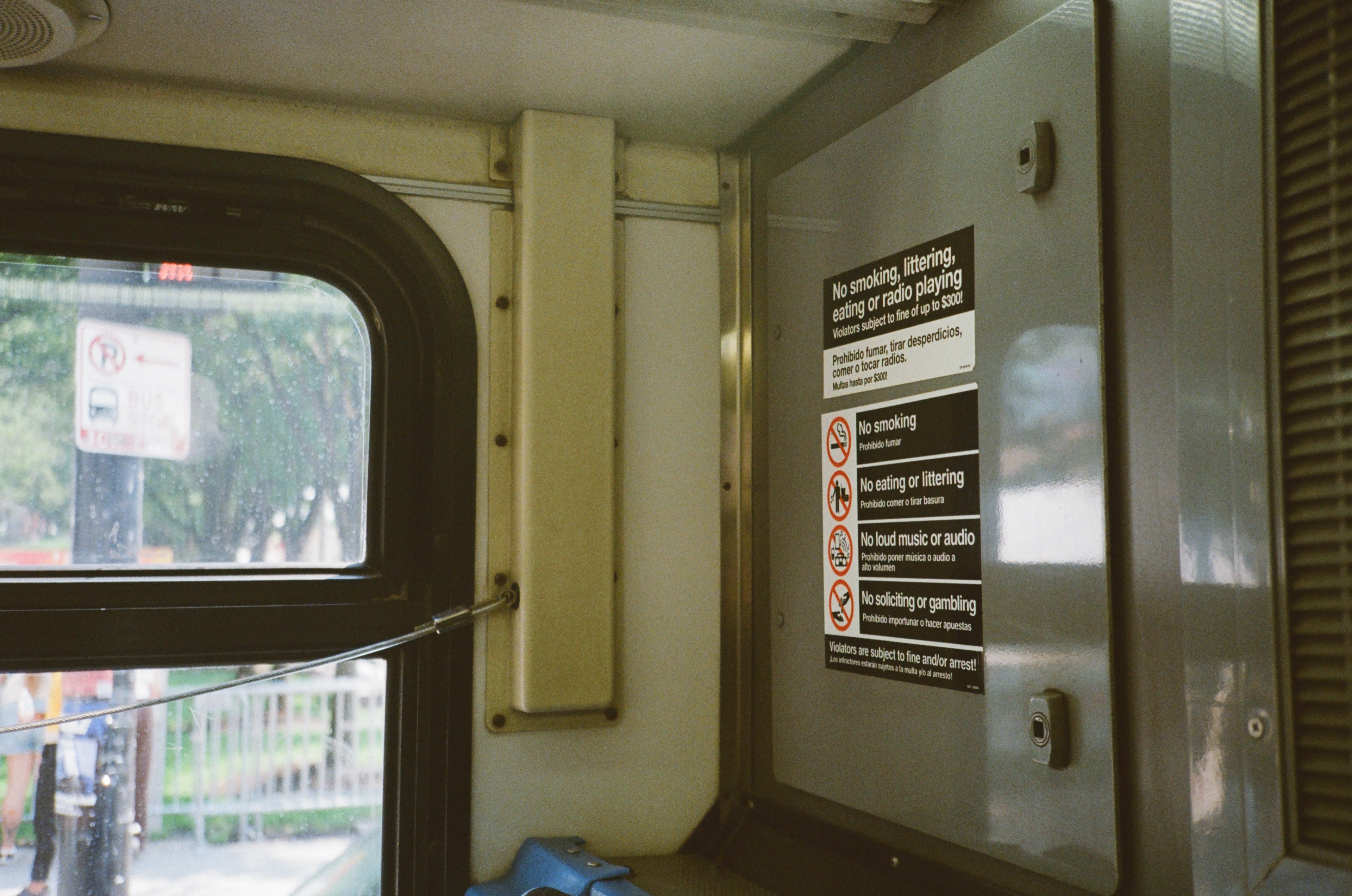 芝加哥公車的警語,包含不能大聲聽音樂或廣播,