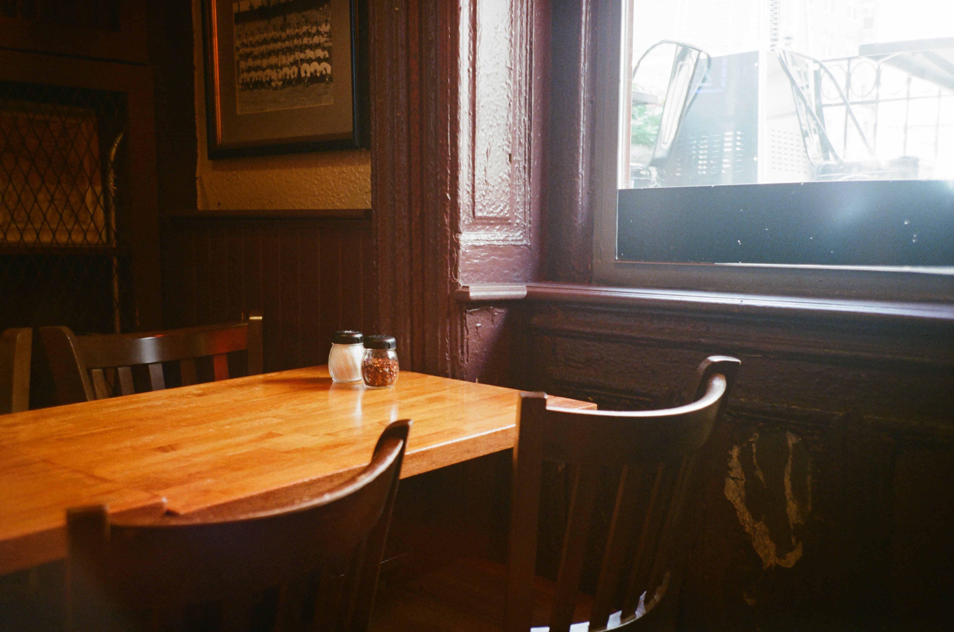 民國 44 年(1955 年)開業的 Pizzeria Due,從建築室內的漆面可以看到經歷了許多次的上漆。