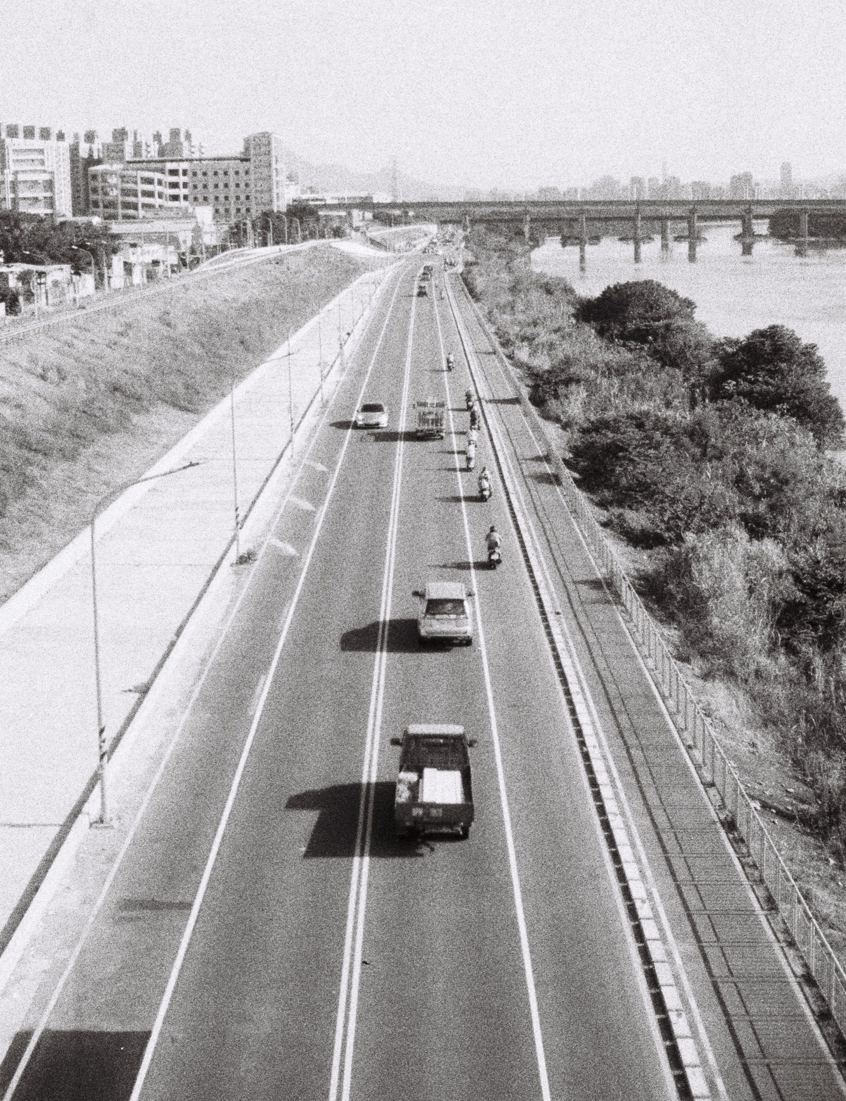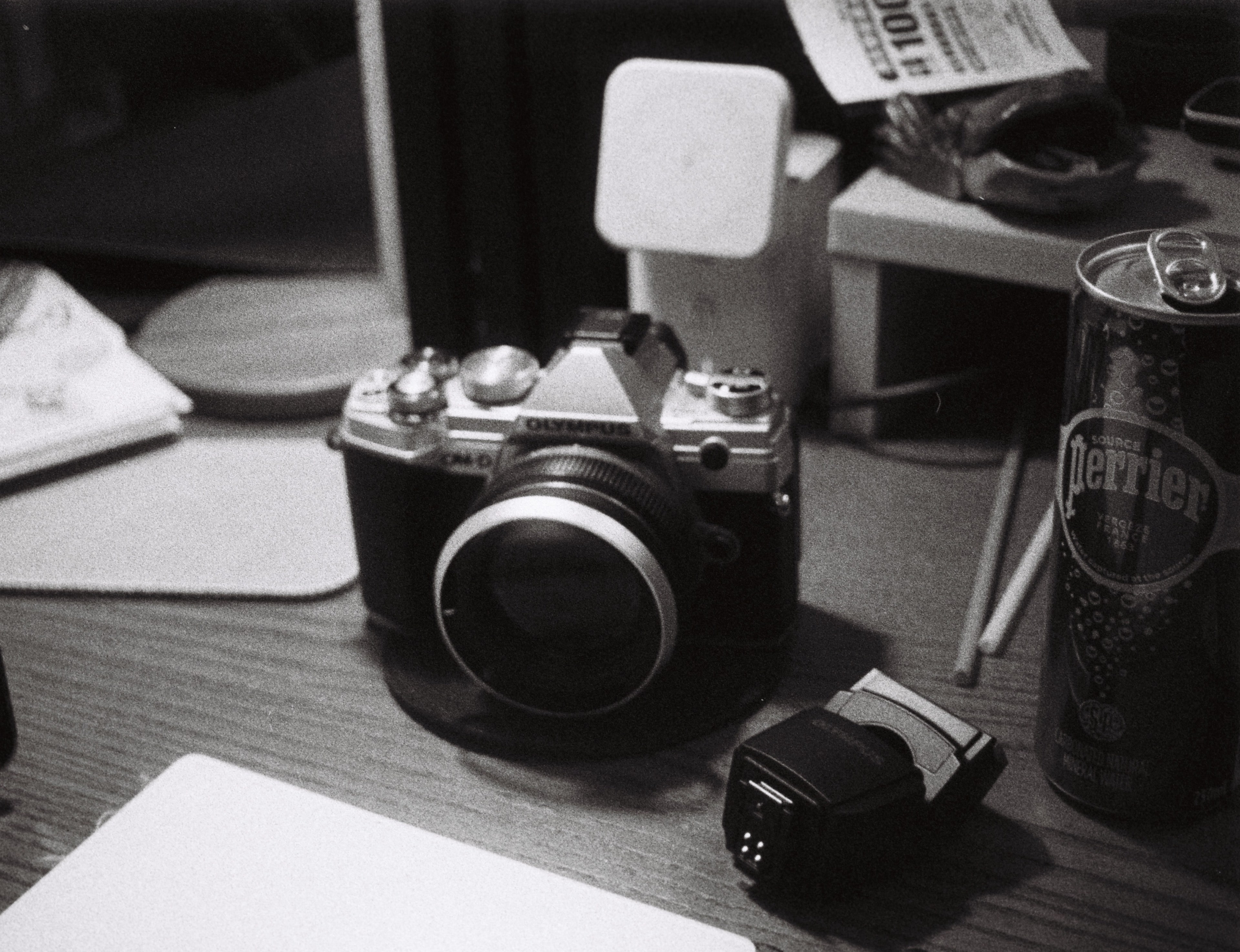 許多人在使用 Pentax Auto 110 時,時常在曝光不足的時候拍出非常模糊的照片,這是因為 Pentax Auto 110 沒有手動模式,一切曝光都交由機身決定,因此如果你都使用預設模式去拍,那麼在夜間絕對是無法使用的。要破除這個限制,我的方法是,在按下快門時,同時按住機身左側的閃光燈連結點,那個連結點是個非常小的按鈕,用來告訴機身你接上了閃光燈,快門速度將會固定在一個不會因為閃光燈過曝的數值,你可以理解它是一個安全快門速度,只要在任何曝光不足的場合,按著那個閃光燈按鈕拍攝,影像基本上都是清晰的,接下來,就是靠著掃描的時候提高亮度了。